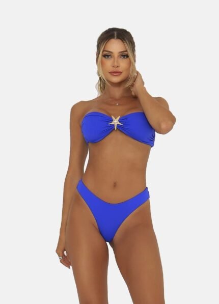 Conjunto Tomara que Caia com Estrela e Calcinha Asa Delta Azul Royal